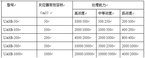 UASB反應(yīng)器規(guī)格參數(shù)表